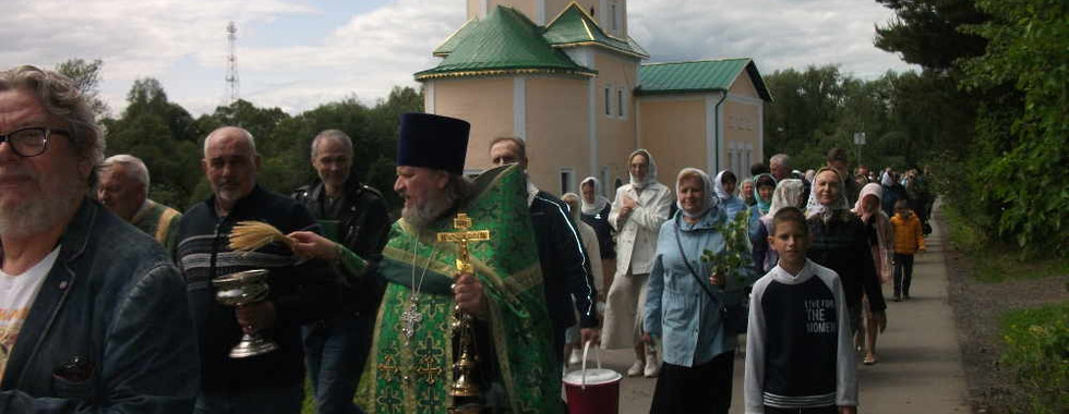 По совершении Божественной Литургии и Великой вечерни с коленопреклонными молитвами о Церкви, мире и единомыслии, о спасении всех молящихся и о упокоении душ всех усопших прихожане с зажжёнными свечами, веточками берёзы, цветами, иконами и хоругвями под радостный колокольный перезвон Крестным ходом прошли вокруг храма. Торжественное шествие проследовало по селу Васюнино. Совершив водосвятный молебен на колодце, вернулись к храму, где собравшихся на праздник ждал настоящий пир! На поляне, под троицкой берёзкой, развернулась «скатерть-самобранка»: всех пришедших на праздник ждали угощения, приготовленные приходскими умелицами. Тёплое общение за праздничной трапезой, горячий чай из «настоящего» самовара с трубой, румяное разнообразие красавцев-пирогов порадовало и постоянных прихожан, и гостей Прихода.